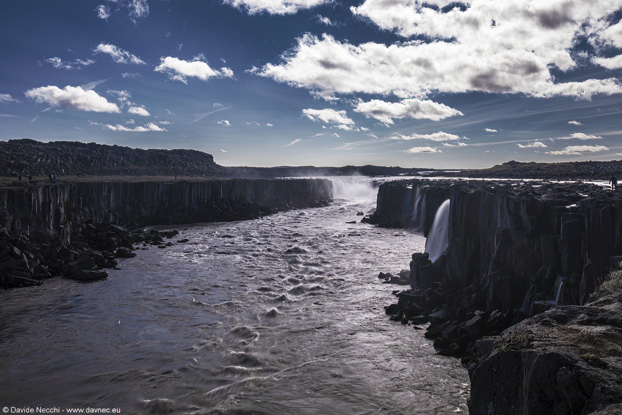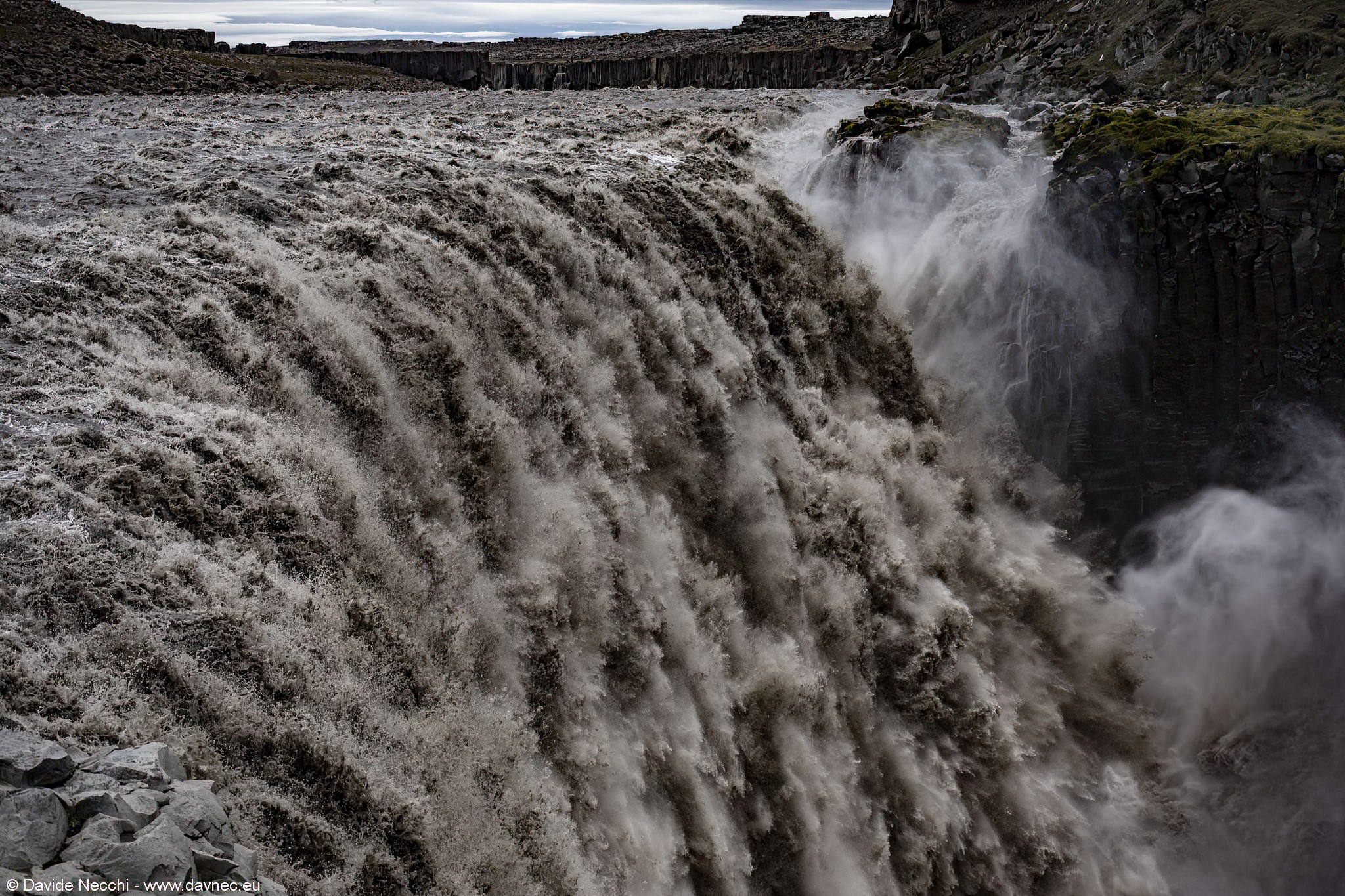 Una discesa abbastanza ripida porta al parcheggio, dove con una camminata di circa 15 minuti si raggiunge il salto d'acqua di Dettifoss che è la maggiore cascata islandese per portata d'acqua, nonché la maggiore in Europa. Il salto del fiume Jökulsá á Fjöllum è di soli 45 metri, ma la sua larghezza di oltre 100m che sembrano quasi tagliati perfettamente allineati e la sua portata che può raggiungere i 500 metri cubi di acqua al secondo non lasciano indifferenti.