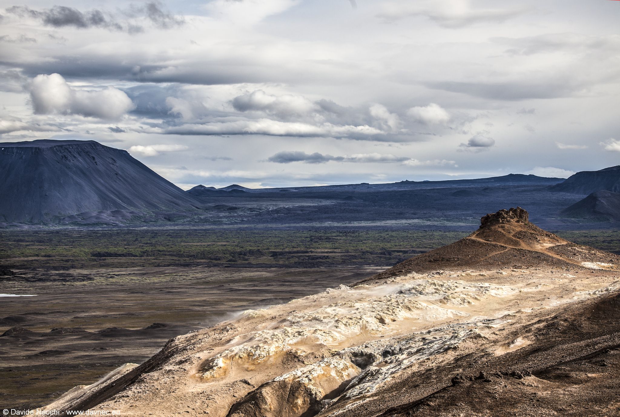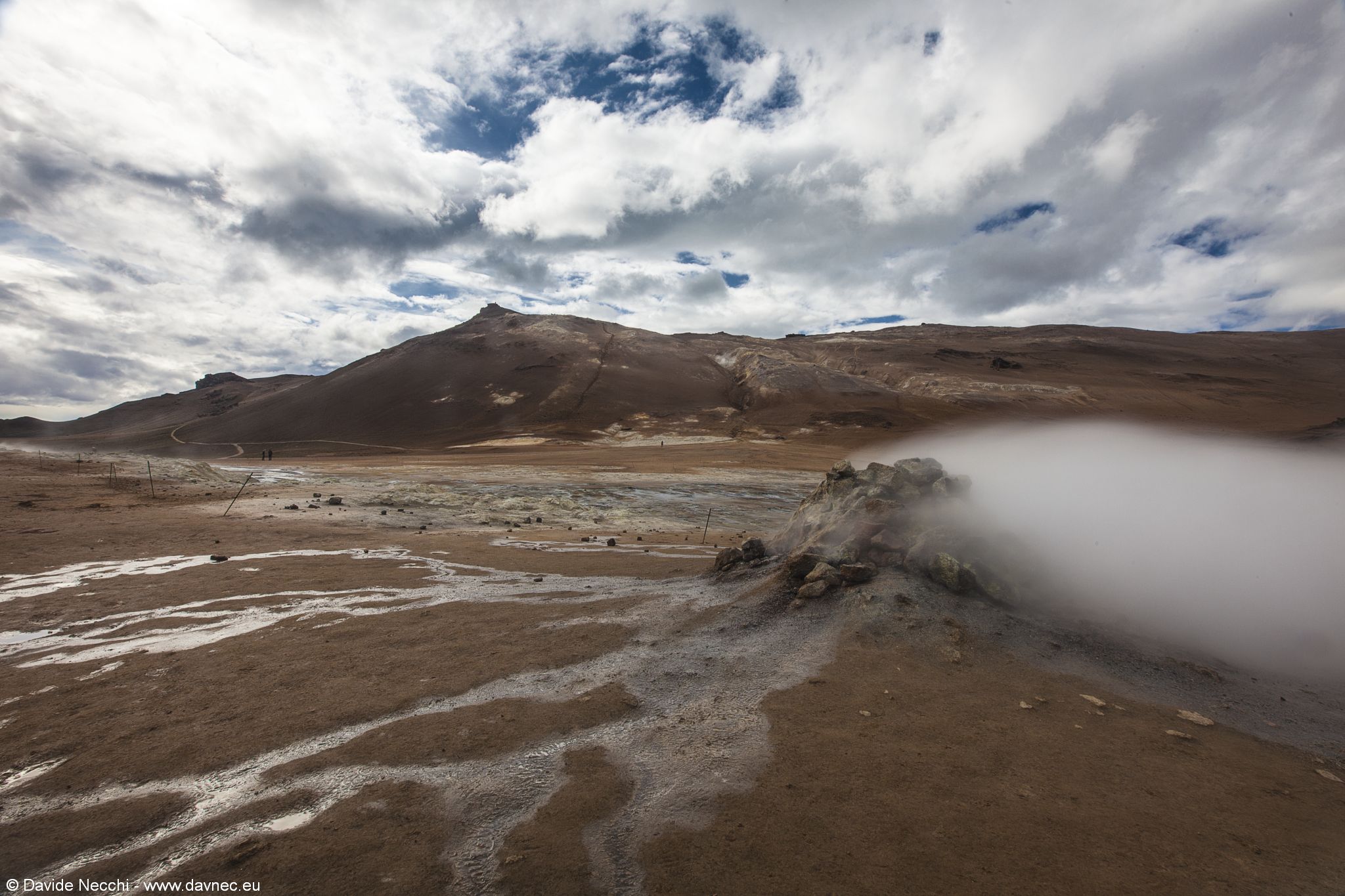 Alla fine della discesa, sulla destra, troviamo l'ampio parcheggio dei Hverir, dove possiamo ammirare le bellissime manifestazioni del vulcanesimo secondario (attenzione a non infangarvi).